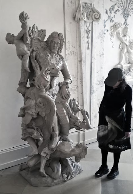 We walked to the Austrian pavilion. A great pavilion. In front of the house, artist Erwin Wurm planted a truck vertically. Inside the truck, visitors can go upstairs to a platform which invites to look over the Mediterranean Sea. The first association with the sculpture was the tragedy which happened 2015 in Austria nearby the Hungarian border where 71 people died in a truck. Austrians won't forget the tragedy so fast. And the invitation to look over the sea evokes associations with the migration movements from Libya to Italy which is nowadays one of the main concerns in Austrian and European politics. The artwork doesn't deliver any answers to the problem - but it makes aware.